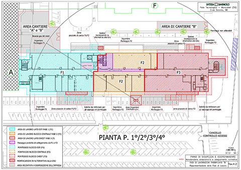 CENTRO CONTABILE POLO TECNOLOGICO INTESA SAN PAOLO Corso Savona 58 - Moncalieri (TO) Intesa San Paolo Group Services anni: 2008 - 2012 Incarico per conto del PM Società Intertecno S.p.A.-Milano di Coordinatore in fase progettuale/esecutiva per manutenzione straordinaria, adeguamento normativo e bonifica amianto Ristrutturazione delle palazzine ad uso uffici A, B, D; Trasformazione della palazzina C in asilo nido e sala conferenze; Trasformazione dell'edificio E in mensa aziendale; Realizzazione nuova pensilina d'ingresso; Interventi di trasformazione delle aree esterne e dei parcheggi; Progetto Studio Michele de Lucchi - Project Management Intertecno S.p.A.